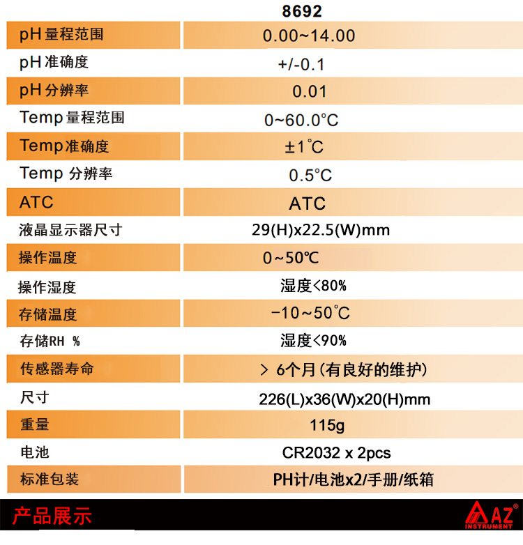 量程范圍 | PH:0.00~14.00 mV: -199~+199、-1999~+1999mV |